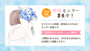 新人セラピストが入店するため女性モニター様を4名募集いたします(^^♪